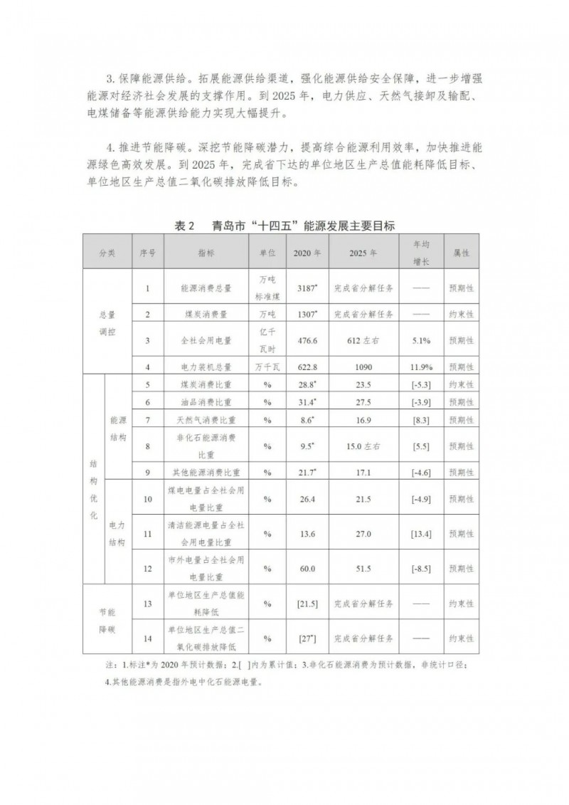 近日,山東青島市人民政府辦公廳印發(fā)了《關(guān)于印發(fā)青島市“十四五”能源發(fā)展規(guī)劃的通知》。提出了青島市“十四五”能源發(fā)展的主要任務(wù)和建設(shè)重點(diǎn)。實(shí)施可再生能源倍增計(jì)劃。以風(fēng)電、光伏發(fā)電為重點(diǎn),以生物質(zhì)能、海洋能、地?zé)崮艿葹檠a(bǔ)充。到2025年,可再生能源裝機(jī)容量新增270萬(wàn)千瓦左右,總裝機(jī)容量達(dá)到523萬(wàn)千瓦左右,占電力總裝機(jī)的比重提升至48%左右。