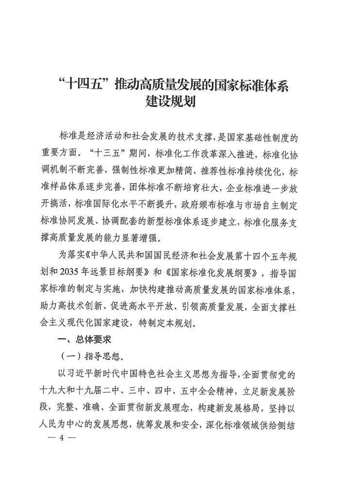 為貫徹落實《國家標(biāo)準(zhǔn)化發(fā)展綱要》,指導(dǎo)國家標(biāo)準(zhǔn)的制定與實施,加快構(gòu)建推動高質(zhì)量發(fā)展的國家標(biāo)準(zhǔn)體系,國家標(biāo)準(zhǔn)化管理委員會會同有關(guān)部門組織編制了《“十四五”推動高質(zhì)量發(fā)展的國家標(biāo)準(zhǔn)體系建設(shè)規(guī)劃》,現(xiàn)印發(fā)給你們,請按照執(zhí)行。