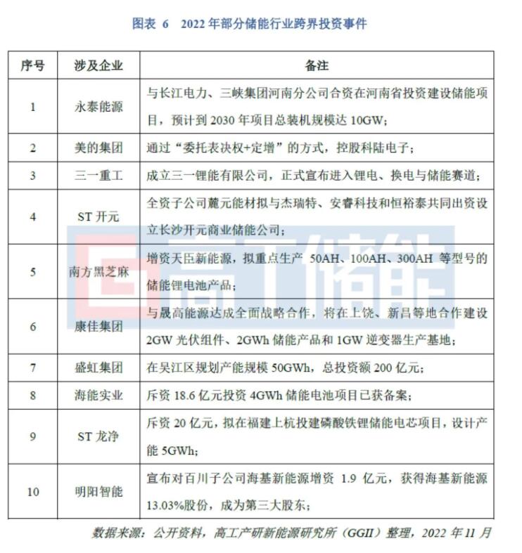 此外,據(jù)不完全統(tǒng)計(jì),2022年跨界儲(chǔ)能上市公司包括永泰能源、美的集團(tuán)、三一重工、ST開元、海能實(shí)業(yè)、ST龍凈、明陽智能等。
