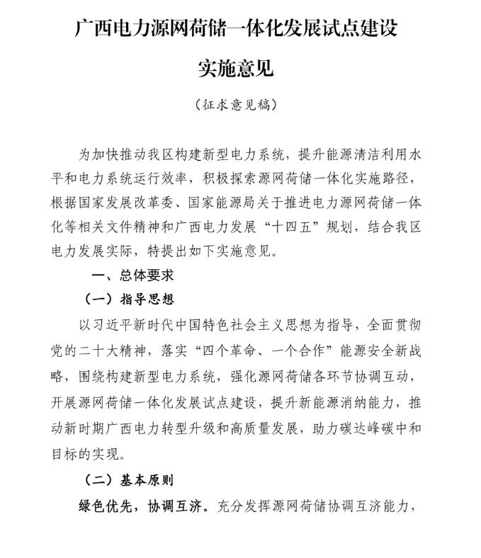 近日,廣西壯族自治區(qū)發(fā)展和改革委員會發(fā)布關于公開征求《廣西電力源網(wǎng)荷儲一體化發(fā)展試點建設實施意見(征求意見稿)》意見的公告。