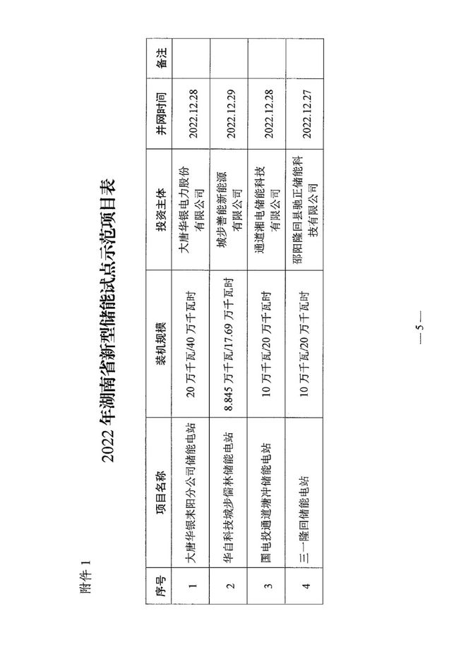 按照湖南發(fā)改委相關(guān)文件,新能源項(xiàng)目應(yīng)配置一定容量的新型儲(chǔ)能,于2022年12月底前,2023年6月底前全容量并網(wǎng)運(yùn)行的新型儲(chǔ)能試點(diǎn)項(xiàng)目分別按其裝機(jī)容量的1.5倍、1.3倍計(jì)算所配新能源容量。