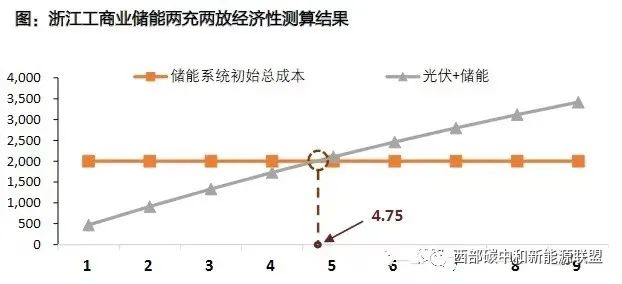 (3)每年凈現(xiàn)金流=(每年可節(jié)省的價(jià)差電費(fèi)-年運(yùn)維費(fèi)用-年逆變器替換費(fèi)用)×折現(xiàn)因子浙江?。簝纱纬潆娋诠葧r(shí),兩次放電分別在尖峰段及高峰段,平均峰谷價(jià)差為0.85元/kWh,測得投資回收期約為4.75年。據(jù)測算,浙江、廣東、海南三省儲(chǔ)能投資回收周期均在6年以內(nèi)。在可實(shí)現(xiàn)兩充兩放的省市,疊加全國范圍內(nèi)峰谷價(jià)差持續(xù)拉大,工商業(yè)儲(chǔ)能經(jīng)濟(jì)性相當(dāng)可觀。依據(jù)測算結(jié)果(本文僅對浙江省進(jìn)行了測算,其他省份就不一一贅述,可自行測算),浙江省4.75年,廣東省5.70年,海南省5.98年。