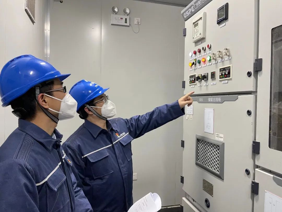 ▲南網儲能公司在做保定移動式儲能電站并網前的最終調試確認。