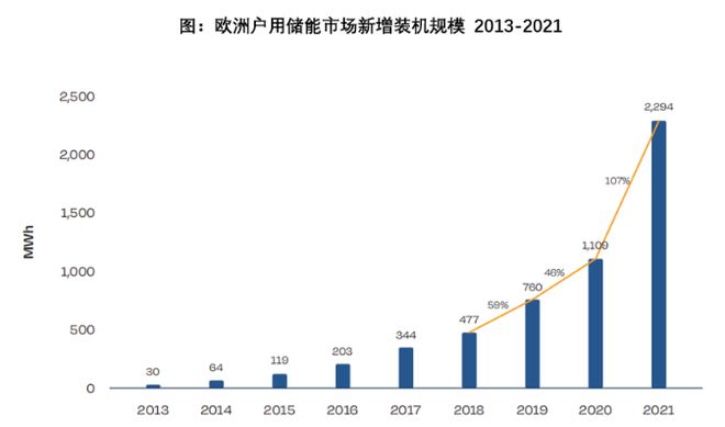 歐洲2022年家用電池儲能系統(tǒng)安裝數量已超過百萬組,電池規(guī)模超過9GWh