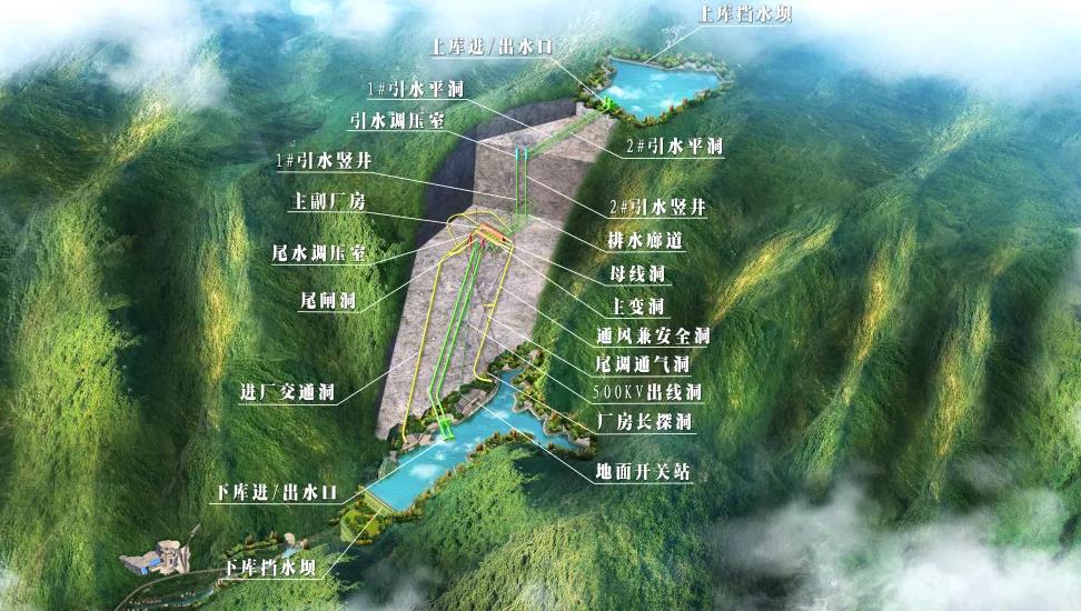 浙江松陽抽水蓄能電站位于麗水市松陽縣玉巖鎮(zhèn)、竹源鄉(xiāng)境內(nèi),是浙江省重大能源項(xiàng)目,已列入《抽水蓄能中長期發(fā)展規(guī)劃(2021-2035年)》“十四五”重點(diǎn)實(shí)施項(xiàng)目,是松陽歷史上投資最大項(xiàng)目,工程總投資約88.2億元,主要由上水庫樞紐、下水庫樞紐、輸水系統(tǒng)、地下廠房、地面開關(guān)站、場內(nèi)道路及附屬設(shè)施等組成。電站為日調(diào)節(jié)純抽水蓄能電站,安裝4臺35萬千瓦可逆式水泵水輪發(fā)電機(jī)組,總裝機(jī)容量為140萬千瓦,年發(fā)電量為14億千瓦時(shí)。