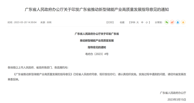 3月20日,廣東省人民政府辦公廳發(fā)布《廣東省推動新型儲能產(chǎn)業(yè)高質(zhì)量發(fā)展的指導意見》(以下簡稱《意見》)。《意見》指出,到2025年,廣東省新型儲能產(chǎn)業(yè)營業(yè)收入達到6000億元,年均增長50%以上,裝機規(guī)模達到300萬千瓦。到2027年,全省新型儲能產(chǎn)業(yè)營業(yè)收入達到1萬億元,裝機規(guī)模達到400萬千瓦。