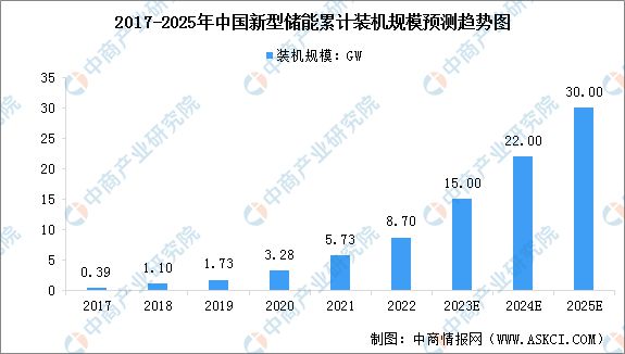 截至2021年底,我國(guó)已投運(yùn)的新型儲(chǔ)能裝機(jī)規(guī)模達(dá)5.73GW,同比增長(zhǎng)74.70%。根據(jù)國(guó)家能源局發(fā)布的相關(guān)數(shù)據(jù),截至2022年底,全國(guó)已投運(yùn)新型儲(chǔ)能項(xiàng)目裝機(jī)規(guī)模達(dá)8.7GW,平均儲(chǔ)能時(shí)長(zhǎng)約2.1小時(shí)。根據(jù)《關(guān)于加快推動(dòng)新型儲(chǔ)能發(fā)展的指導(dǎo)意見(jiàn)》,預(yù)計(jì)到2025年國(guó)內(nèi)新型儲(chǔ)能裝機(jī)規(guī)模將增至30GW。