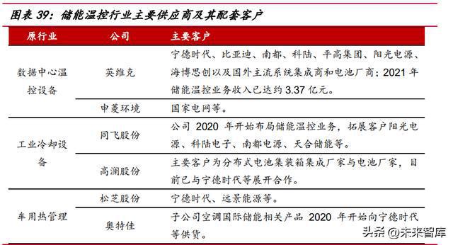 儲能溫控廠商多為相近賽道跨界而來,行業(yè)格局尚不穩(wěn)定。當(dāng)前儲能溫控廠商主 要來自數(shù)據(jù)中心溫控、工業(yè)冷卻設(shè)備和車用熱管理領(lǐng)域,各自的先天優(yōu)勢有部分差異。 一般而言,數(shù)據(jù)中心溫控設(shè)備企業(yè)此前在風(fēng)冷領(lǐng)域技術(shù)積累更多;工業(yè)冷卻設(shè)備企業(yè) 此前對于液冷技術(shù)的應(yīng)用更多;而動力電池?zé)峁芾砥髽I(yè)此前與電池廠商的綁定相對更 深入。目前儲能溫控市場空間相對較小,液冷方案在國內(nèi)剛剛起步,且行業(yè)具備較強(qiáng) 的定制化屬性,競爭格局尚不明確,需關(guān)注溫控廠商與頭部系統(tǒng)集成商的配套關(guān)系。