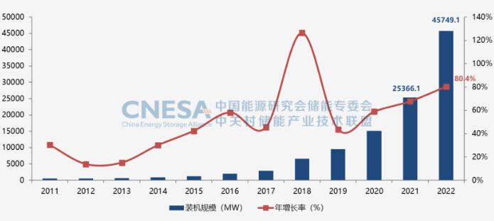 圖4:中國電力儲(chǔ)能市場累計(jì)裝機(jī)規(guī)模(2000-2022)