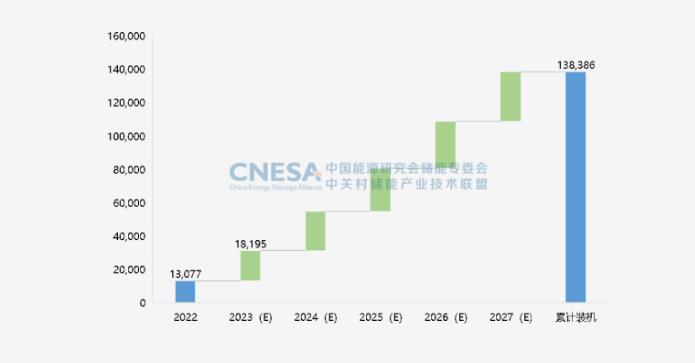 圖6:未來5年中國新型儲(chǔ)能累計(jì)投運(yùn)裝機(jī)規(guī)模預(yù)測(2023-2027年) 單位:MW