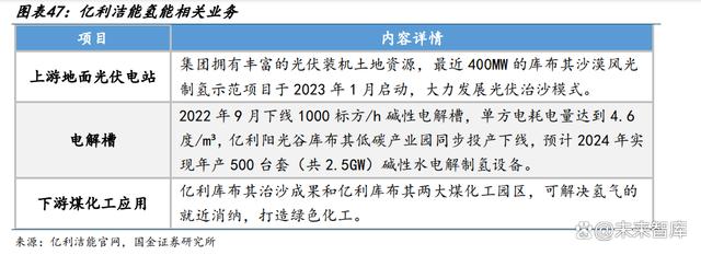 打造新能源土地+電解槽+下游自有化工一體化鏈條,深耕全國最大新能源綠氫規(guī)劃內(nèi) 蒙古地區(qū)。大力推進(jìn)風(fēng)光氫儲產(chǎn)業(yè)集群,當(dāng)前內(nèi)蒙古綠氫項(xiàng)目規(guī)劃量已達(dá) 72 萬噸, 對應(yīng)約 15-20GW電解槽裝機(jī),占比達(dá)到全國總量的 42%;同時依托大西北優(yōu)質(zhì)資源, 集團(tuán)擁有豐富的光伏裝機(jī)土地資源,具備以光伏資源兌換電解槽訂單的優(yōu)勢。