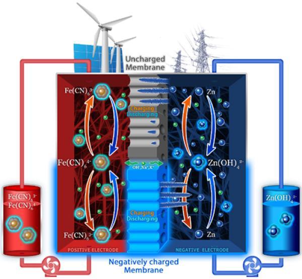 鋅鐵液流電池選用礦藏儲(chǔ)量豐富且價(jià)格穩(wěn)定的鋅、鐵元素組成配對(duì),依靠鋅酸鹽離子和鐵離子之間的電化學(xué)反應(yīng)來(lái)實(shí)現(xiàn)電能的儲(chǔ)存和釋放,采用堿性電解液,擁有零爆炸零燃燒的特性,電池放電次數(shù)超過(guò)20000次,使用壽命超過(guò)20年,在額定功率輸出下,放電時(shí)長(zhǎng)超過(guò)8小時(shí)。