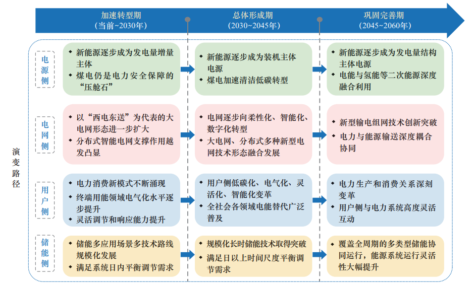 圖|新型電力系統(tǒng)建設(shè)“三步走”發(fā)展路徑(來源:《新型電力系統(tǒng)發(fā)展藍皮書》)