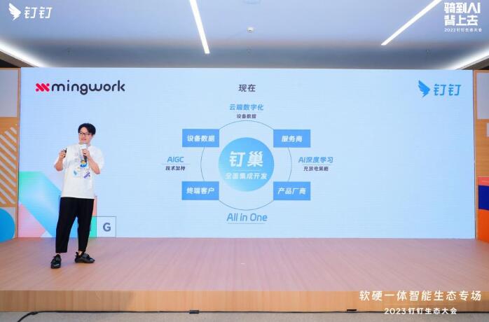 明我的分布式解決方案不僅為用戶(hù)提供了硬件服務(wù),還在釘釘平臺(tái)上進(jìn)行了軟件服務(wù)的升級(jí)。相較于傳統(tǒng)的硬件銷(xiāo)售模式,這次的方案體現(xiàn)了數(shù)字化的深度。在釘釘上,用戶(hù)無(wú)需再通過(guò)PPT來(lái)了解產(chǎn)品,而是可以通過(guò)在線CAD和數(shù)字展廳與產(chǎn)品互動(dòng)。一旦提出需求,他們就可以看到一個(gè)在線數(shù)字方案。結(jié)合AIGC技術(shù),用戶(hù)能夠迅速了解產(chǎn)品的細(xì)節(jié)。