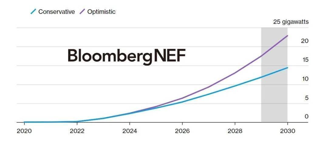 圖:中國液流電池裝機(jī)規(guī)模預(yù)測(cè)(彭博新能源財(cái)經(jīng))