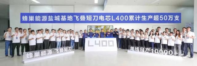 7月22日,蜂巢能源在鹽城基地慶祝飛疊短刀L400電芯累計(jì)生產(chǎn)超50萬(wàn)支。