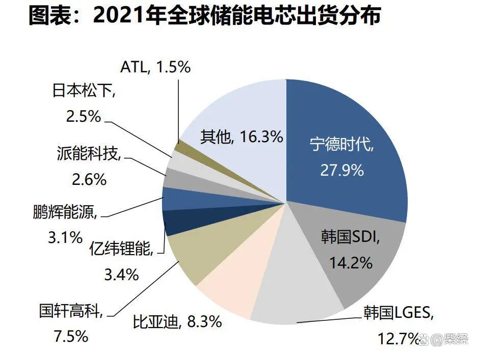 全球儲(chǔ)能電芯中國(guó)廠商出貨領(lǐng)先,寧德時(shí)代出貨量全球第一。