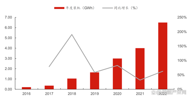 特斯拉年度裝機量(GWh)