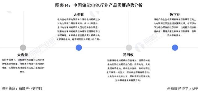 隨著中國儲能電池行業(yè)的快速發(fā)展,大容量、大型化、易回收和數(shù)字化將成為儲能電池主要的發(fā)展方向。在大容量方面,同等規(guī)模下儲能器件的大容量可以減少單體電池使用數(shù)量,降低單體電池一致均衡的難度,從而降低電池發(fā)生熱失控乃至起火的概率;在大型化方面,大型化是配置靈活的電化學儲能技術在電力系統(tǒng)中發(fā)揮主導的作用的必經(jīng)之路;在易回收方面,研制易回收的儲能電池體系,使回收收益具備吸引力是未來發(fā)展大方向;在數(shù)字化方面,儲能產(chǎn)品全生命周期數(shù)字化信息既可以向上為電網(wǎng)調度及監(jiān)控提供重要支撐,也可以向下為核心部件的狀態(tài)診斷、性能提升提供數(shù)據(jù)參考。