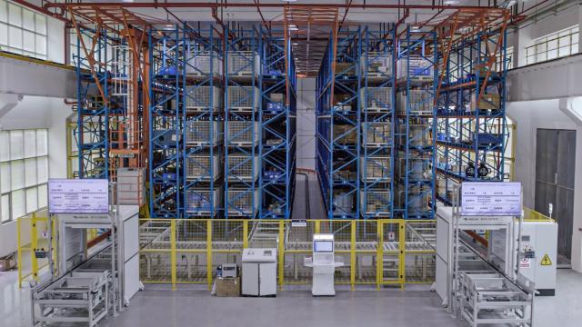 為了更好地提升倉(cāng)內(nèi)空間利用率,在進(jìn)行現(xiàn)場(chǎng)測(cè)量與規(guī)劃后,京東物流通過(guò)投入使用堆垛機(jī)、智能升降貨柜、料箱AGV等智能設(shè)備為其進(jìn)行了一系列軟硬件改造升級(jí),最大程度利用場(chǎng)地空間,建設(shè)超萬(wàn)個(gè)儲(chǔ)位,儲(chǔ)位最高可放置重量達(dá)1000公斤的物資。與此同時(shí),京東物流還全面利用人臉識(shí)別技術(shù),語(yǔ)音播報(bào)、燈光指引、智能墨水屏、重力式感應(yīng)貨架等硬件,部署智能軟件系統(tǒng),實(shí)現(xiàn)24小時(shí)無(wú)人化值守,提高領(lǐng)料效率,確保安全生產(chǎn)。