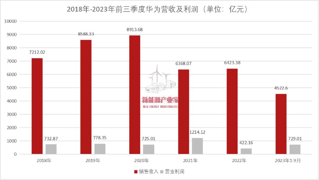 在美國(guó)制裁的陰影下,過(guò)去數(shù)年,華為的業(yè)務(wù)營(yíng)收一直處在下滑態(tài)勢(shì)。2022年,華為銷售收入已經(jīng)比 2019 年少了 2000 多億元,利潤(rùn)更在過(guò)去五年里減少超過(guò)四成。直到今年,才得以扭轉(zhuǎn)。
