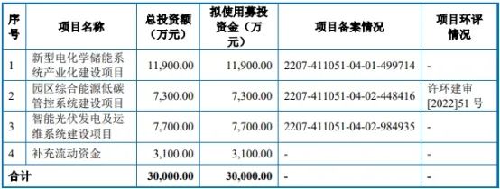 許昌智能成立于2009年,脫胎與許繼集團(tuán),目前主營(yíng)業(yè)務(wù)為智能配用電產(chǎn)品、新能源產(chǎn)品和系統(tǒng)的研發(fā)、設(shè)計(jì)、組裝、銷(xiāo)售和服務(wù),以及電力工程總承包業(yè)務(wù)。 根據(jù)許昌智能2024年1月15日披露的招股書(shū)顯示,公司擬募集資金30,000.00萬(wàn)元,計(jì)劃用于新型電化學(xué)儲(chǔ)能系統(tǒng)產(chǎn)業(yè)化建設(shè)項(xiàng)目、園區(qū)綜合能源低碳管控系統(tǒng)建設(shè)項(xiàng)目、智能光伏發(fā)電及運(yùn)維系統(tǒng)建設(shè)項(xiàng)目、補(bǔ)充流動(dòng)資金。