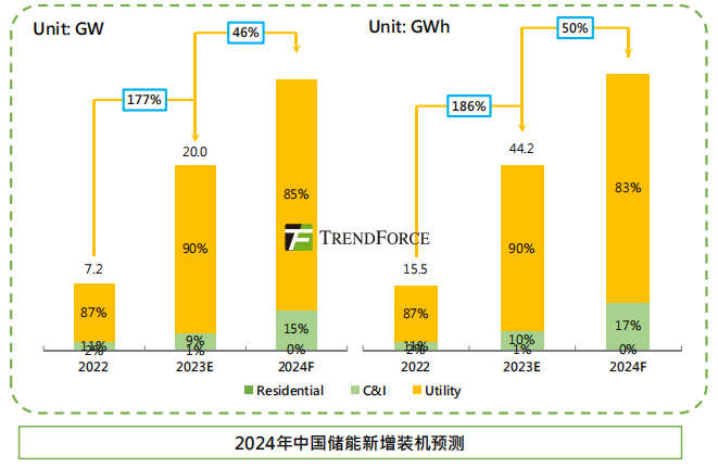 中國裝機(jī)預(yù)測(cè):據(jù)集邦咨詢預(yù)測(cè),2024年中國儲(chǔ)能新增裝機(jī)將達(dá)29.2GW/66.3GWh,其中工商業(yè)儲(chǔ)能有望達(dá)到4.3GW/11.2GWh。