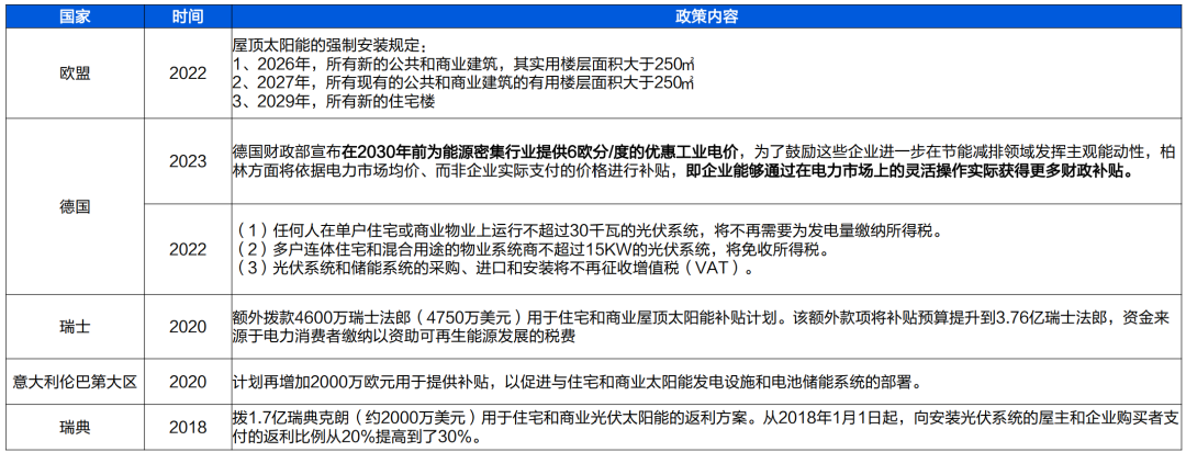 圖:歐洲部分國家和地區(qū)工商業(yè)儲(chǔ)能補(bǔ)貼政策