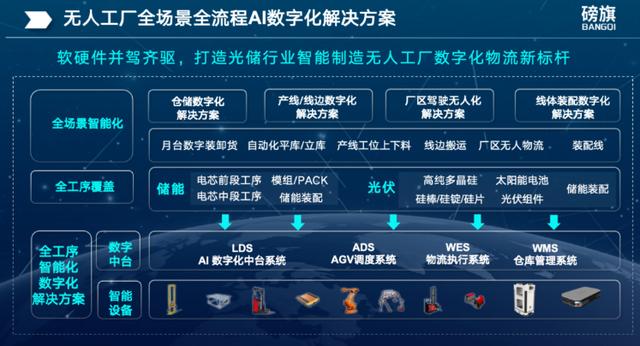 在此靠山下,磅旗科技踴躍摸索創(chuàng)新,使用構(gòu)建無(wú)人工場(chǎng)AI數(shù)字化,打造了自立可控的“軟件+硬件+數(shù)據(jù)+算法”云管端邊一體化處理方案,推出多品類(lèi)AGV/機(jī)械人夾雜調(diào)理系統(tǒng)ADS、企業(yè)級(jí)無(wú)人工場(chǎng)數(shù)字中臺(tái)系統(tǒng)LDS,可能助力各AGV實(shí)現(xiàn)數(shù)據(jù)互通、協(xié)同功課,買(mǎi)通各工序過(guò)程的系統(tǒng)卡點(diǎn)和設(shè)施盲點(diǎn),賦能儲(chǔ)能產(chǎn)業(yè)智能制作數(shù)字化周全晉級(jí)。
