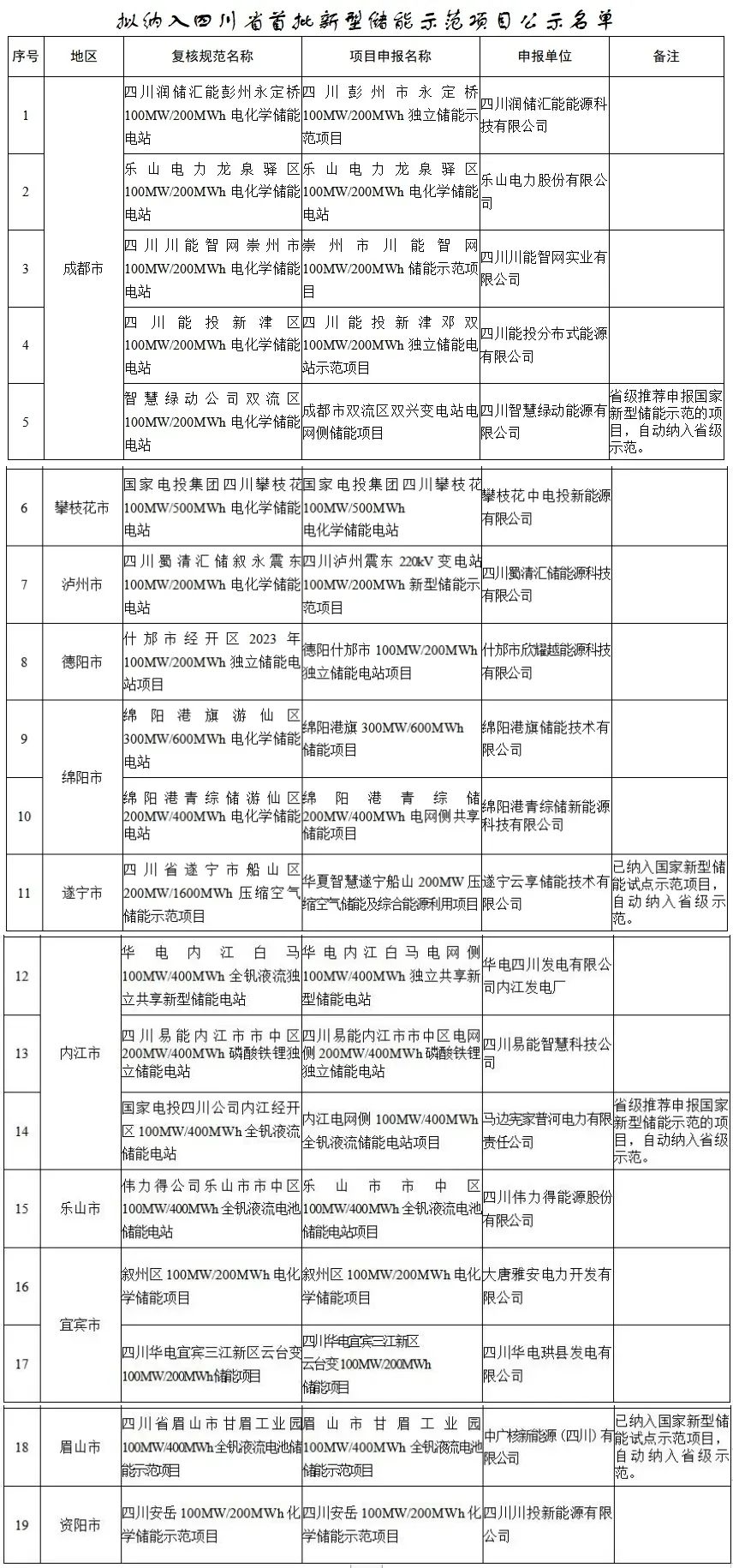 附:擬納入四川省首批新型儲能示范項(xiàng)目公示名單