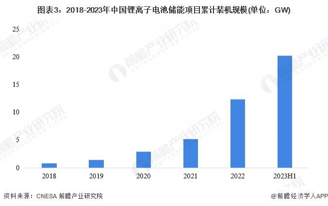 鋰離子電池具有環(huán)境污染小、能量密度高、循環(huán)壽命長、倍率性能強等優(yōu)點,隨著其成本下降,鋰離子電池的經濟性開始日益凸顯,在儲能市場的應用也愈發(fā)廣泛。近年來,我國鋰離子電池儲能裝機規(guī)模持續(xù)上漲。2022 年,我國鋰離子電池儲能累計裝機規(guī)模達到 12.3GW,較 2021 年實現(xiàn)大幅增長。截至 2023 年上半年末,我國鋰離子電池儲能累計裝機規(guī)模已達 20.2GW。