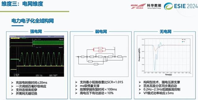 第三個創(chuàng)新維度就是電網(wǎng)側(cè)?,F(xiàn)在的電力電子化,不管是光伏也好,儲能也好,對電網(wǎng)提出很大挑戰(zhàn)。當前的一個構(gòu)網(wǎng),我們提出在強電網(wǎng)、弱電網(wǎng)甚至無電網(wǎng)的情況下面,新型儲能如何適應(yīng)電網(wǎng)的各種需求。