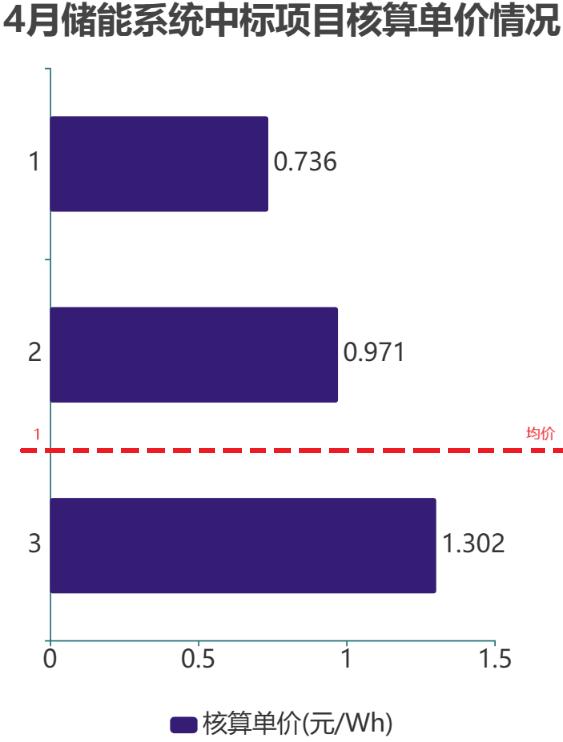 ※ 4月儲能系統(tǒng)中標核算單價情況 來源:星球儲能所
