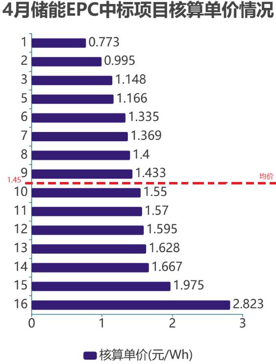 ※ 4月儲能EPC中標核算單價情況 來源:星球儲能所