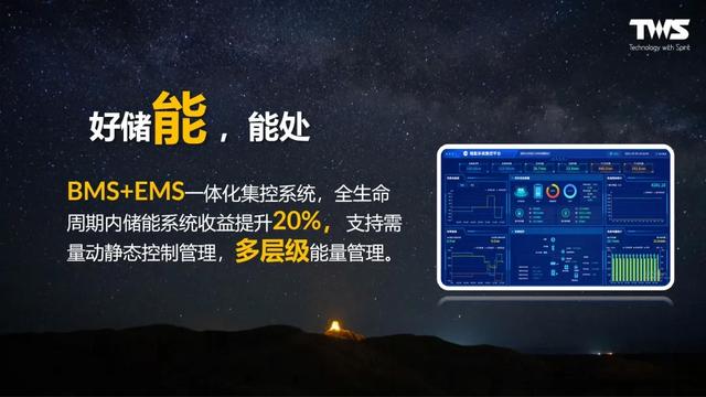 新品BMS+EMS采用一體化集控系統(tǒng),使得全生命周期內(nèi)儲能系統(tǒng)收益提升20%;并且支持需量動靜態(tài)控制管理,做到多層級能量管理;結(jié)合智能優(yōu)化算法和云平臺遠程監(jiān)控,AI模型自學習優(yōu)化、實時診斷健康狀態(tài)、出具數(shù)據(jù)報告分析,以精準科學的“能源管理方案”助力工商業(yè)儲能高效設(shè)計運營。