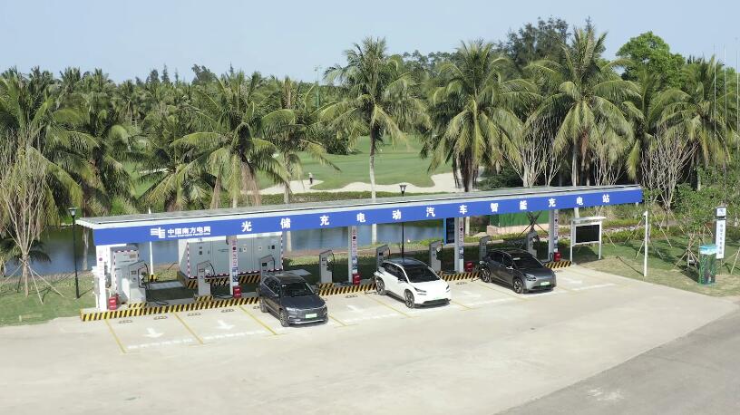 2023年3月,南網(wǎng)儲能建成投產(chǎn)海南省瓊海市博鰲鎮(zhèn)東嶼島首座光儲充電動汽車智能充電站,項目采用“數(shù)字化+智能化”方式運營,光儲充電站白天利用光伏發(fā)電,支撐充電樁充電,同時儲能吸收光伏裕余電力或谷電,在站內(nèi)用電高峰時向充電樁送電協(xié)助支撐負荷,實現(xiàn)削峰填谷、增加新能源消納、極速充電等多種功能,打造“零碳”微網(wǎng)示范應用。