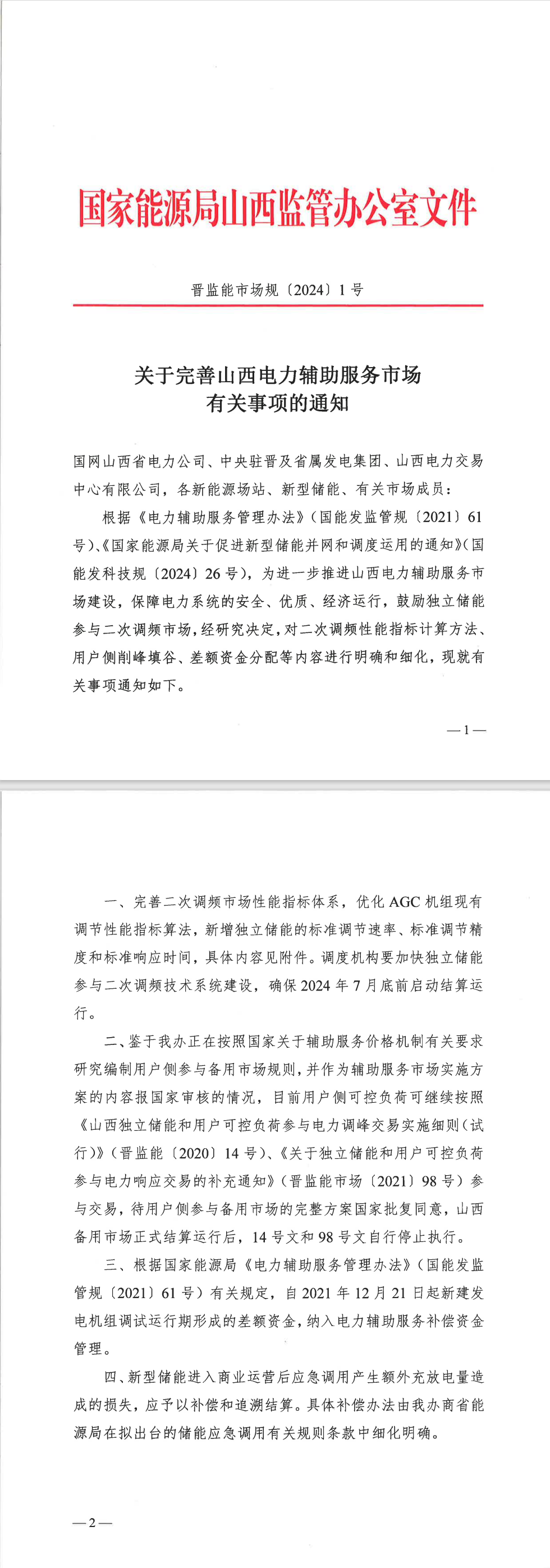 加快獨立儲能參與二次調(diào)頻技術(shù)系統(tǒng)建設(shè),確保2024年7月底前啟動結(jié)算運(yùn)行。新型儲能進(jìn)入商業(yè)運(yùn)營后應(yīng)急調(diào)用產(chǎn)生額外充放電量造成的損失,應(yīng)予以補(bǔ)償和追溯結(jié)算。