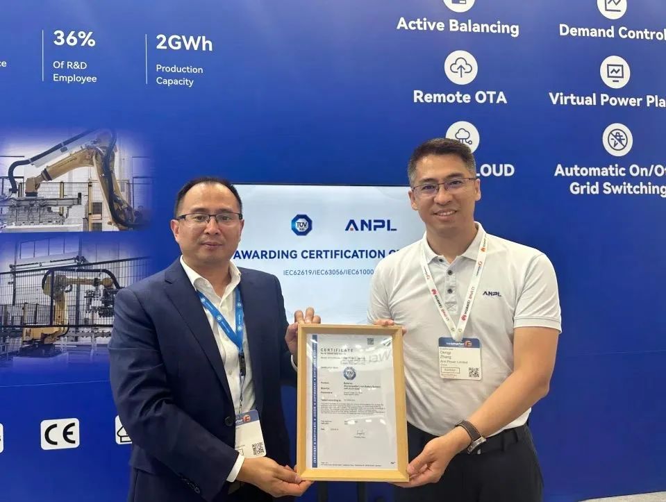 認(rèn)證展會現(xiàn)場,安瑞哲這款儲能柜獲頒歐洲市場權(quán)威的TüV南德認(rèn)證證書。南德TüV是世界上規(guī)模最大、最悠久認(rèn)證機(jī)構(gòu)之一,得到全球的廣泛認(rèn)可。南德TüV對其新品的認(rèn)同,不僅因為其符合行業(yè)標(biāo)準(zhǔn),還源于產(chǎn)品的創(chuàng)新設(shè)計。安瑞哲總經(jīng)理張登基介紹,HULK 200具備單體容量可調(diào)控的特點,其單體容量范圍為100~200KWh,多機(jī)并聯(lián)可擴(kuò)展至MWh級容量,靈活配置可滿足不同客戶需求。依托安瑞哲自主研發(fā)的風(fēng)冷系統(tǒng),電池模組和系統(tǒng)的防水等級均有了大幅提升,有力保障了運行安全。創(chuàng)新的散熱板和風(fēng)道設(shè)計確保設(shè)備在各種環(huán)境下都能穩(wěn)定運行,產(chǎn)品既媲美液冷的散熱性能,又保留風(fēng)冷的高效運維。