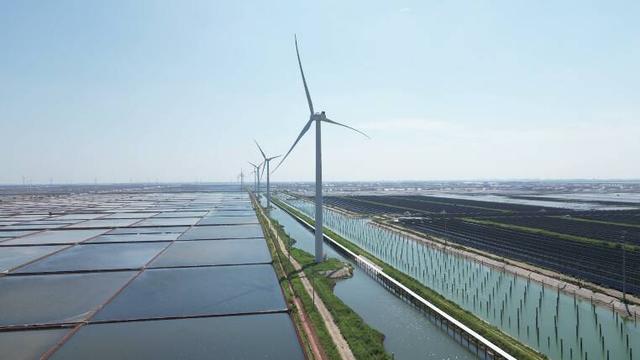 該項(xiàng)目作為魯北基地首家投產(chǎn)運(yùn)營的風(fēng)光儲(chǔ)試點(diǎn),創(chuàng)新性地采用“漁光互補(bǔ)”“鹽光互補(bǔ)”發(fā)展模式,實(shí)現(xiàn)了鹽光、漁光與儲(chǔ)能的集中連片、立體高效利用,標(biāo)志著綠色發(fā)展的新實(shí)踐。而幾年前,這片區(qū)域還是一片荒蕪的鹽堿地,營里鎮(zhèn)經(jīng)濟(jì)發(fā)展辦副主任王恒回憶,這里曾以鹽田和養(yǎng)殖灘涂為主,產(chǎn)業(yè)單一、發(fā)展模式傳統(tǒng),海洋資源利用率低,限制了區(qū)域的綜合發(fā)展。