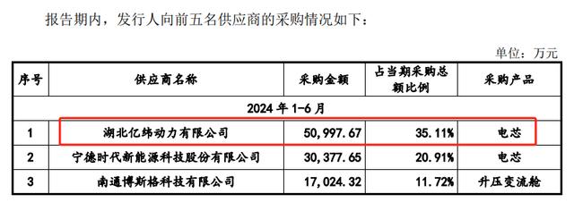 當(dāng)然,海博思創(chuàng)也早就意識(shí)到這一點(diǎn),從實(shí)際情況來(lái)看,其已經(jīng)拓展了新的電芯供應(yīng)商,包括億緯鋰能、鵬輝能源、衛(wèi)藍(lán)新能源、蘭鈞新能源、欣旺達(dá)等。數(shù)據(jù)上來(lái)看,2024年上半年,海博思創(chuàng)主要供應(yīng)商發(fā)生了變化,億緯鋰能成為其電芯產(chǎn)品的第一供應(yīng)商,采購(gòu)金額占當(dāng)期采購(gòu)總額35%以上。