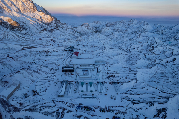 隆冬臘月,筆者懷揣著深深的敬意,踏上探訪玉門抽水蓄能電站建設(shè)者的西北之旅。飛機(jī)降落在嘉峪關(guān)后,換乘車輛,一路顛簸三個(gè)多小時(shí),穿越繁華都市,漸入戈壁荒漠。今年,這里已迎來六場(chǎng)瑞雪,皚皚白雪如同厚重的絨毯,給大地披上了銀裝素裹,不少地方積雪厚度足有五六十公分。