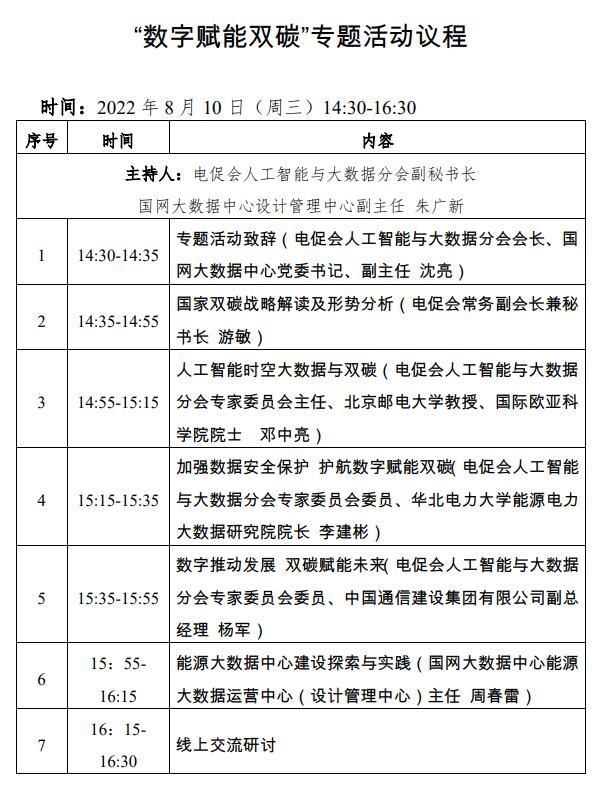 8月10日下午 數(shù)字賦能雙碳沙龍線上進(jìn)行
