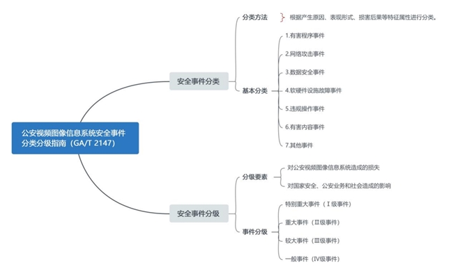 標(biāo)準(zhǔn)主要內(nèi)容:該標(biāo)準(zhǔn)內(nèi)容主要包括安全事件分類、安全事件分級等兩大類。同時,標(biāo)準(zhǔn)還闡述了公安視頻圖像信息系統(tǒng)安全事件分類、基本分類和安全事件分級要素、事件分級等內(nèi)容。詳情如圖: