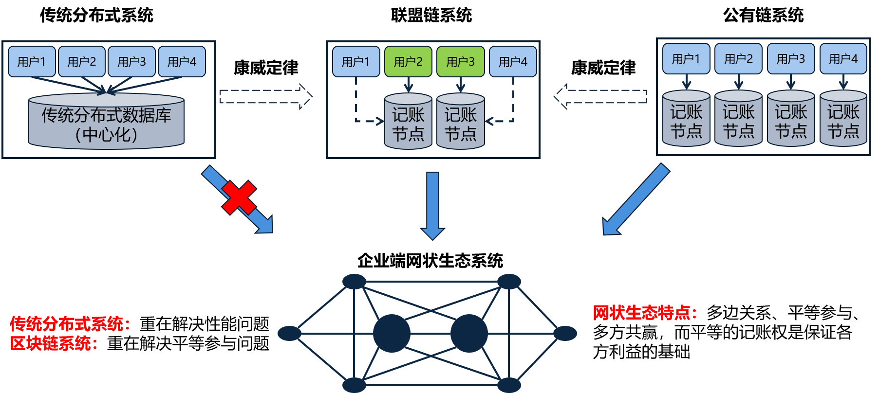社會(huì)環(huán)境已經(jīng)從具有較強(qiáng)依附關(guān)系的中心化輻射狀生態(tài)結(jié)構(gòu)逐漸演進(jìn)至平臺(tái)化、多中心、自由協(xié)作的網(wǎng)狀體系,尤其是在企業(yè)端,根據(jù)康威定律,設(shè)計(jì)對(duì)象的組織結(jié)構(gòu)會(huì)映射到其系統(tǒng)結(jié)構(gòu),所以,符合多中心網(wǎng)狀生態(tài)特點(diǎn)的系統(tǒng)架構(gòu)必然會(huì)應(yīng)運(yùn)而生。傳統(tǒng)的分布式系統(tǒng)其誕生目的主要是為了提升系統(tǒng)性能,而區(qū)塊鏈系統(tǒng)則更多考慮了如何幫助用戶平等參與網(wǎng)絡(luò),這應(yīng)該是二者在設(shè)計(jì)理念上的核心差別,因此,區(qū)塊鏈系統(tǒng)比傳統(tǒng)的分布式系統(tǒng)更適于多方共贏生態(tài)環(huán)境的構(gòu)建。這個(gè)是看起來有點(diǎn)兒“務(wù)虛”,但是也有其道理的聯(lián)盟鏈的價(jià)值。公鏈的問題在于,如果現(xiàn)階段應(yīng)用,顯然不符合企業(yè)端生態(tài)的實(shí)際情況,企業(yè)端的生態(tài)環(huán)境即便你一開始沒設(shè)計(jì)中心也會(huì)自然產(chǎn)生中心,這是人的社會(huì)性決定的,所以也不要那么排斥所謂的“中心化”,鏡子中照出來的無論好不好看都是你自己,化妝不解決本質(zhì)問題。