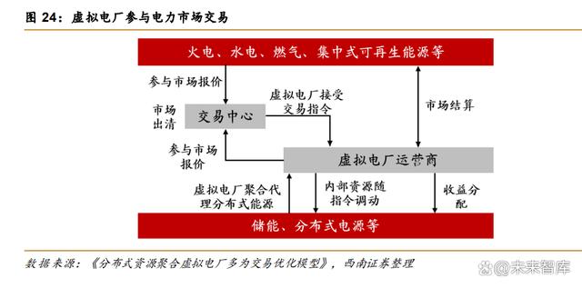 虛擬電廠案例:國電投虛擬電廠——需求響應、輔助服務與電力現(xiàn)貨相結(jié)合。國家電投 集團上海發(fā)電設備成套設計研究院牽頭研發(fā)的虛擬電廠平臺實現(xiàn)了“虛擬電廠+電力需求響 應”、“虛擬電廠+電力輔助服務”和“虛擬電廠+電力現(xiàn)貨”3 項基礎功能試驗,并步入商業(yè) 化運營。國家電投江蘇綜合能源公司于 2022 年 2 月完成與江蘇省電力需求側(cè)管理平臺數(shù)據(jù) 接入試驗,其日運行負荷達 700MW,最大可調(diào)容量 300MW,平臺整合了多類型用電大客戶, 并完成了交易管理、負荷規(guī)劃、調(diào)度監(jiān)盤等關(guān)鍵應用,具備了參加江蘇需求響應和輔助服務 的能力,通過虛擬電廠充分激發(fā)和釋放用戶側(cè)靈活調(diào)節(jié)能力,不但能為電網(wǎng)供需平衡做出貢 獻,還能提高售電公司的市場營銷競爭力。深圳能源虛擬電廠于 2022 年 6 月投運,公司通 過預測電力現(xiàn)貨市場價格,通過調(diào)節(jié)用戶可控負荷將用戶負荷從現(xiàn)貨高價調(diào)整至現(xiàn)貨低價時 段,實現(xiàn)售電公司電力現(xiàn)貨盈利的提升,實現(xiàn)平均度電收益 0.274 元。