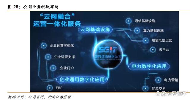 背靠國家電網(wǎng),通過重組實現(xiàn)產(chǎn)業(yè)轉(zhuǎn)型升級。公司前身為岷江水電,2019 年完成了重 大資產(chǎn)重組,重組后公司實現(xiàn)了由發(fā)供電業(yè)務(wù)轉(zhuǎn)型為信息通信業(yè)務(wù),重點立足能源領(lǐng)域,形 成云網(wǎng)基礎(chǔ)設(shè)施、云平臺、云應(yīng)用和企業(yè)運營支撐服務(wù)四大板塊業(yè)務(wù),具備了“云網(wǎng)融合” 全產(chǎn)業(yè)研發(fā)和生產(chǎn)服務(wù)能力,助力能源互聯(lián)網(wǎng)建設(shè)和企業(yè)數(shù)字化轉(zhuǎn)型。2020 年,為適應(yīng)新 形勢,公司對原有四大板塊業(yè)務(wù)進行優(yōu)化調(diào)整,升級為云網(wǎng)基礎(chǔ)設(shè)施、企業(yè)通用數(shù)字化應(yīng)用 和電力數(shù)字化應(yīng)用等三大板塊業(yè)務(wù)。