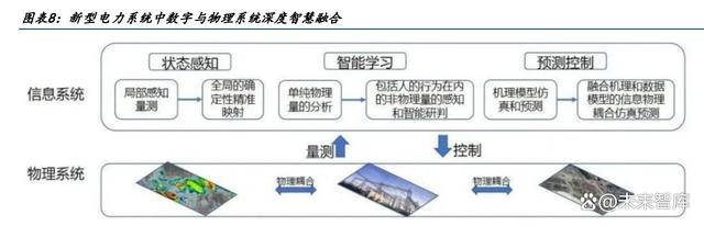 智慧融合是構(gòu)建新型電力系統(tǒng)的基礎(chǔ)。新型電力系統(tǒng)以數(shù)據(jù)為核心驅(qū)動,呈現(xiàn)數(shù)字與物理 系統(tǒng)深度融合特點,系統(tǒng)控制運行由“量測-控制”模式向多物理系統(tǒng)的狀態(tài)感知、智能 學(xué)習(xí)和預(yù)測控制等方式轉(zhuǎn)變。1)狀態(tài)感知:電網(wǎng)內(nèi)外參與耦合運行的物理系統(tǒng),將從局 部的感知量測,向全局的確定性精準(zhǔn)映射轉(zhuǎn)變。2)智能學(xué)習(xí):由于參與要素的多樣性,將 從單純物理量的分析,向包括人的行為在內(nèi)的非物理量的感知和智能研判進(jìn)行轉(zhuǎn)變。3) 預(yù)測控制:將從電力物理系統(tǒng)的機(jī)理模型仿真和預(yù)測,向融合機(jī)理和數(shù)據(jù)模型的信息物理 耦合仿真預(yù)測轉(zhuǎn)變,提升隨機(jī)變量的預(yù)測精度,并應(yīng)用于電網(wǎng)逐級調(diào)控和控制引導(dǎo)。