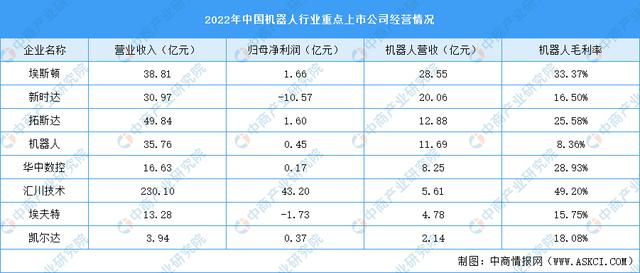 工業(yè)機(jī)器人行業(yè)重點(diǎn)上市公司經(jīng)營情況對(duì)比分析