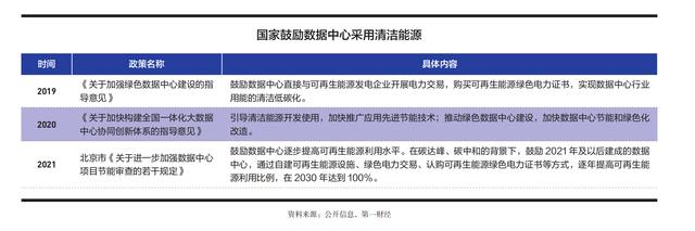 2019年以來(lái),國(guó)家先后出臺(tái)多個(gè)政策推動(dòng)數(shù)據(jù)中心采用清潔能源。傳統(tǒng)風(fēng)電、光伏發(fā)電理論裝機(jī)功率可以滿(mǎn)足數(shù)據(jù)中心用電需求,但數(shù)據(jù)中心的高性能設(shè)備對(duì)電源穩(wěn)定性要求加較高,與風(fēng)電、光伏發(fā)電的波動(dòng)性、間歇性存在結(jié)構(gòu)性矛盾 。