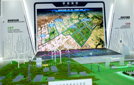 在展示區(qū)中心位置擺放的東數(shù)西算產(chǎn)業(yè)園區(qū)模擬沙盤上,一個(gè)個(gè)風(fēng)力發(fā)電機(jī)和光伏發(fā)電基地格外吸引眼球,通過(guò)一座座銀色電網(wǎng)鐵塔與產(chǎn)業(yè)園區(qū)緊密相連,為園區(qū)產(chǎn)業(yè)發(fā)展提供源源不斷地清潔電力能源。同時(shí),墻上的電子屏幕滾動(dòng)播放著“數(shù)字經(jīng)濟(jì)招商企業(yè)一覽表”,顯示已有53家企業(yè)簽約。